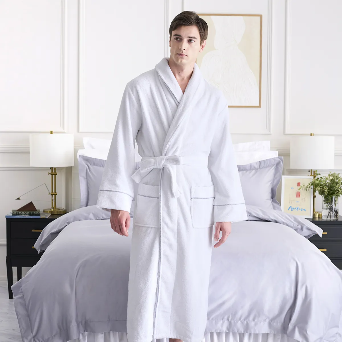 軽やかでやさしい肌触りが魅力の ハイドロコットンバスローブ。
