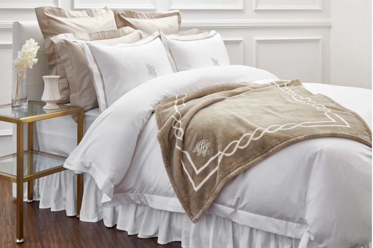 合わせたブランケットは、同じベージュながらすこしだけ暖かみをプラスしたカラーリング。