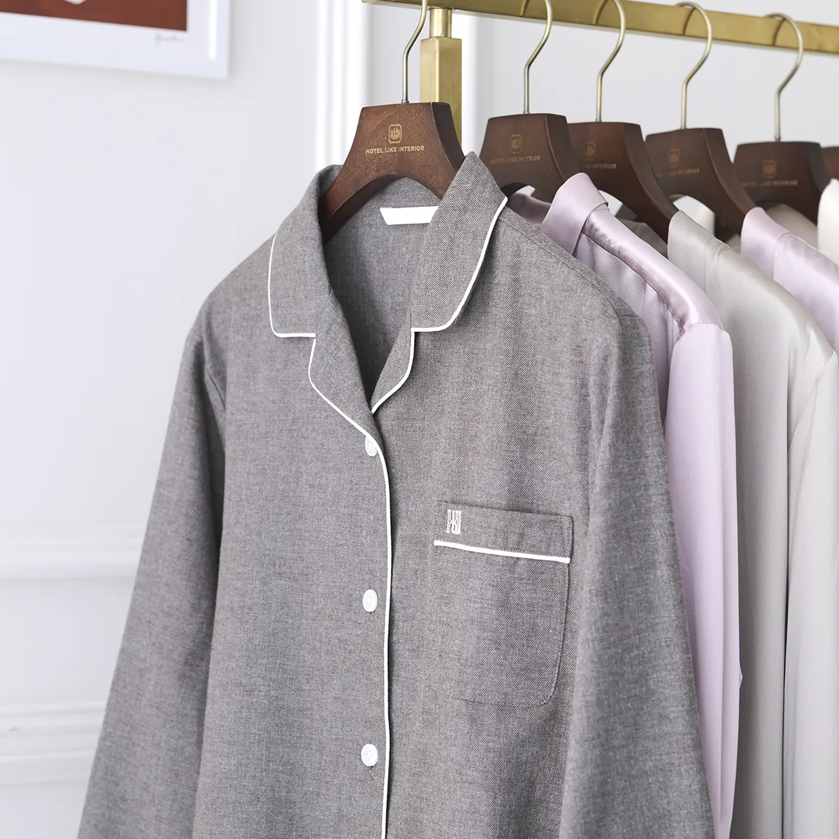 起毛したフランネル生地はやわらかく肌を包み、ぬくもりある着心地が魅力です。