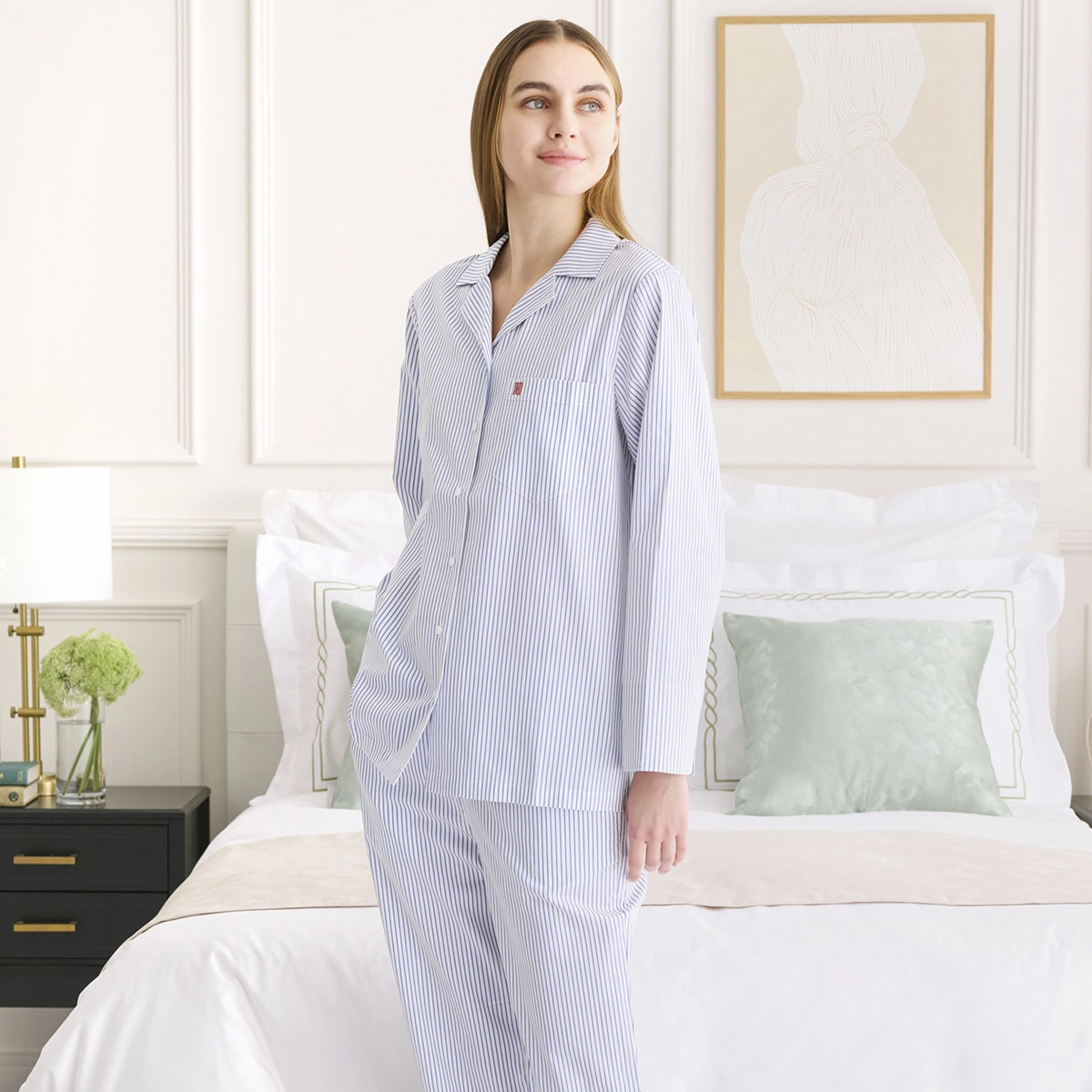 適度なハリ感としなやかさを兼ね備えた、コットンツイルストライプパジャマ。