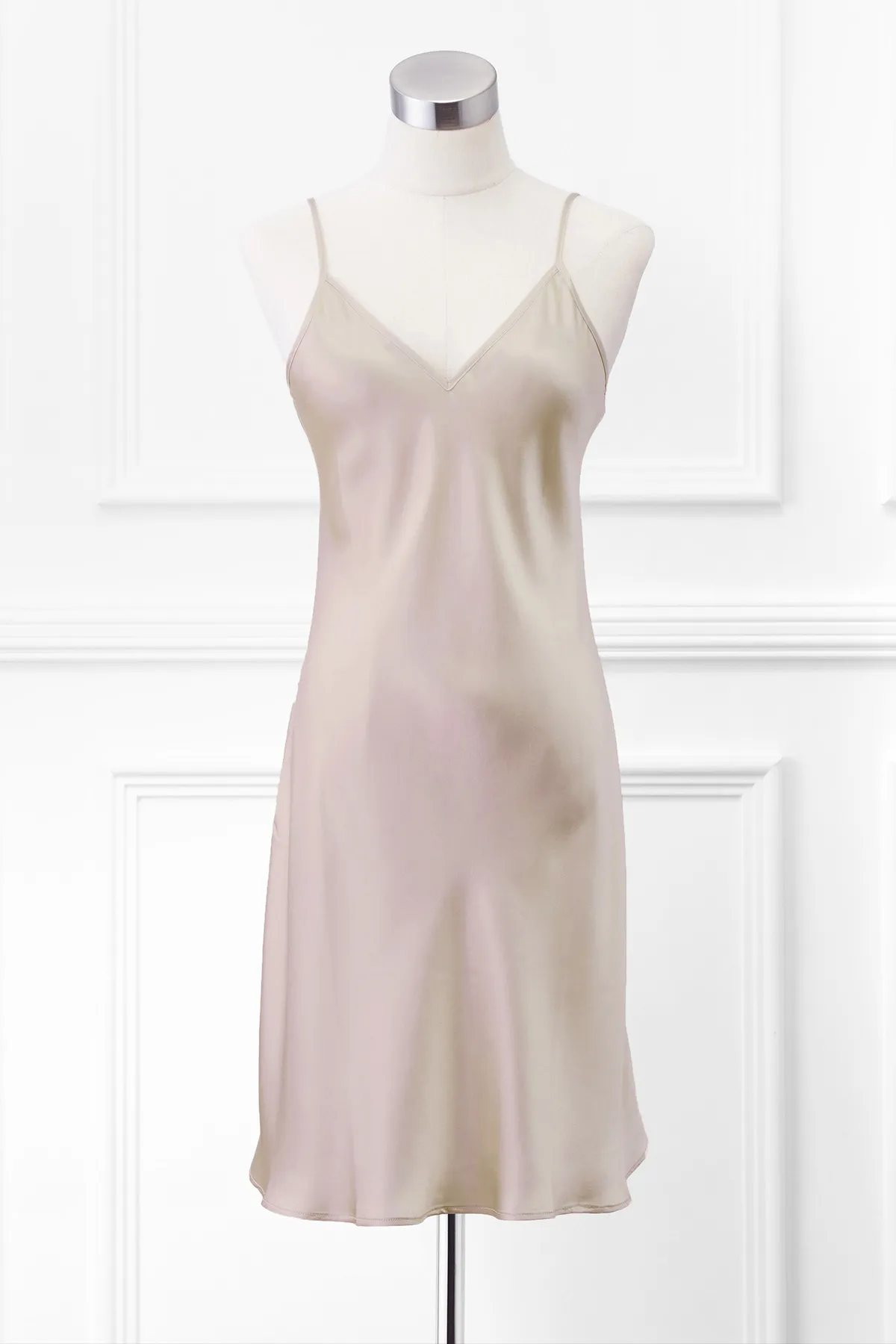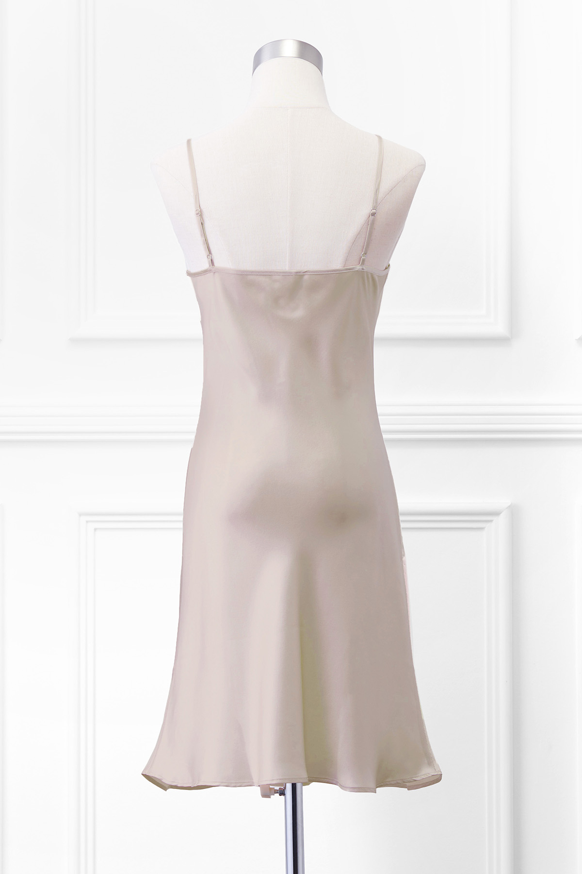ルームウェアとしてはもちろん、ワンピースのインナーとしても重宝するシルクキャミソール。
