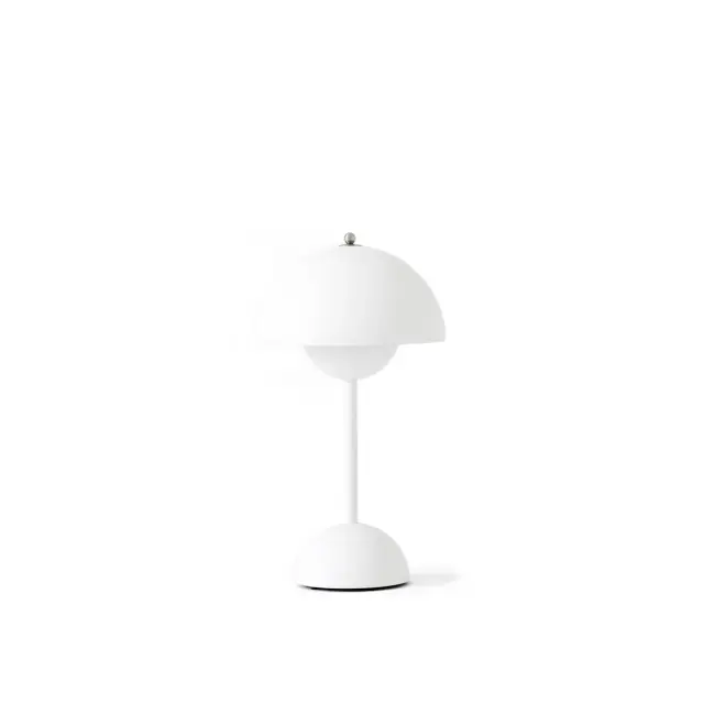ポータブルランプであるVP9は、フラワーポットのテーブルランプタイプよりも少し小さく、意図的に軽量に設計され、電源はUSB充電ケーブルを採用しています。
