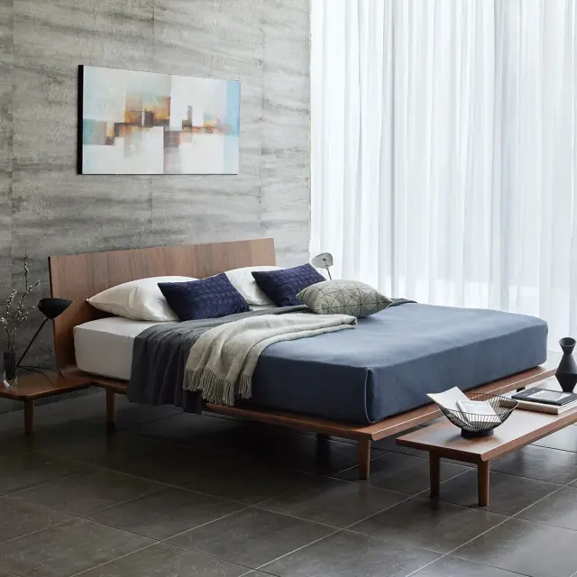 ヘッドボードと床面が緩やかなカーブでつながる、一体感のあるフォルム。