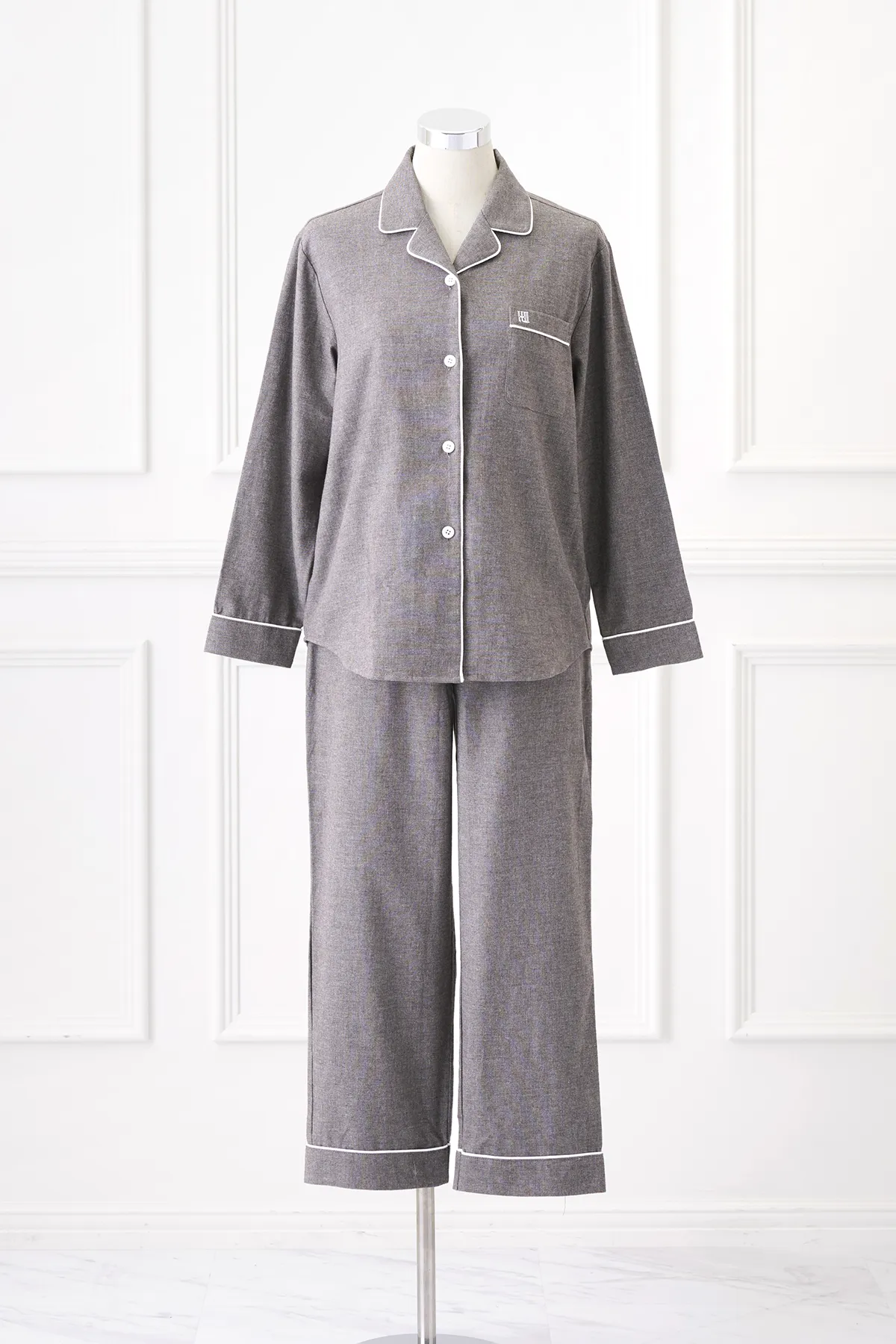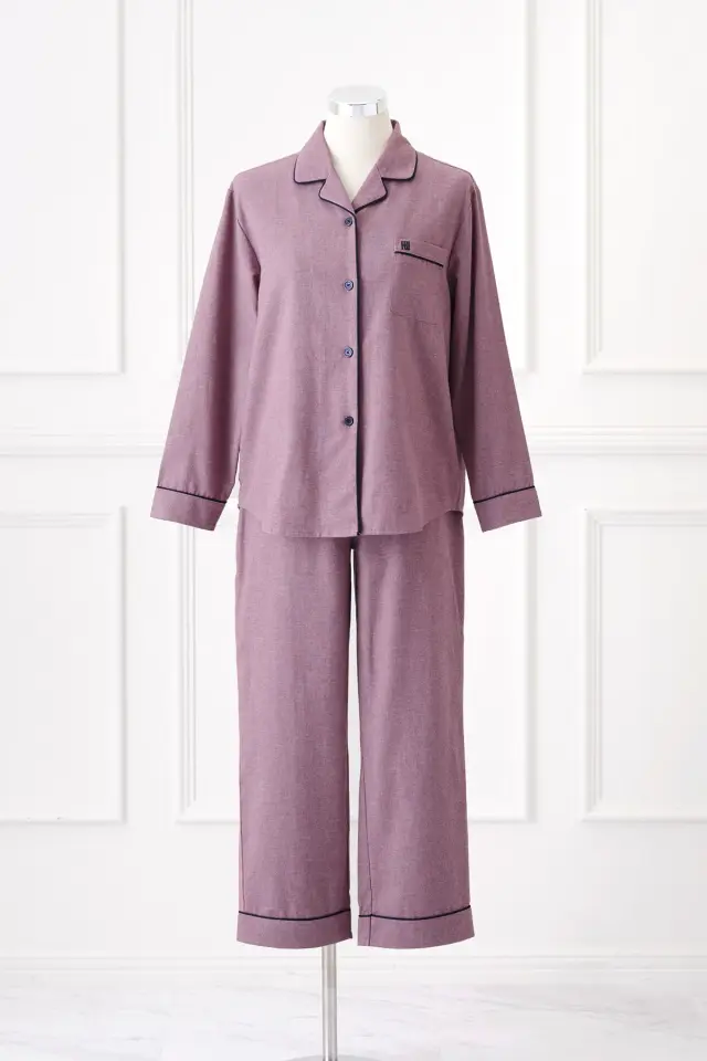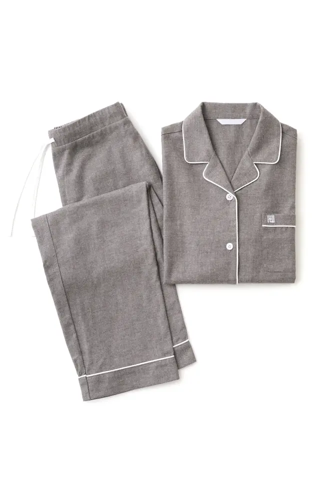 起毛感のあるフランネル生地を使用した、ぬくもりある着心地が魅力のパジャマです。 就寝前の読書や、起床後の一杯のコーヒー。