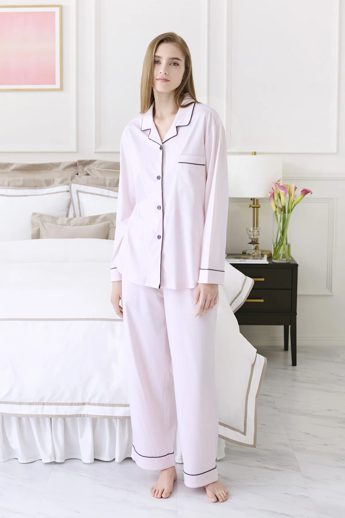 なめらかな肌触りと抜群の伸縮性で、不動の人気を誇るホテルライクインテリアのコットンジャージーパジャマ。