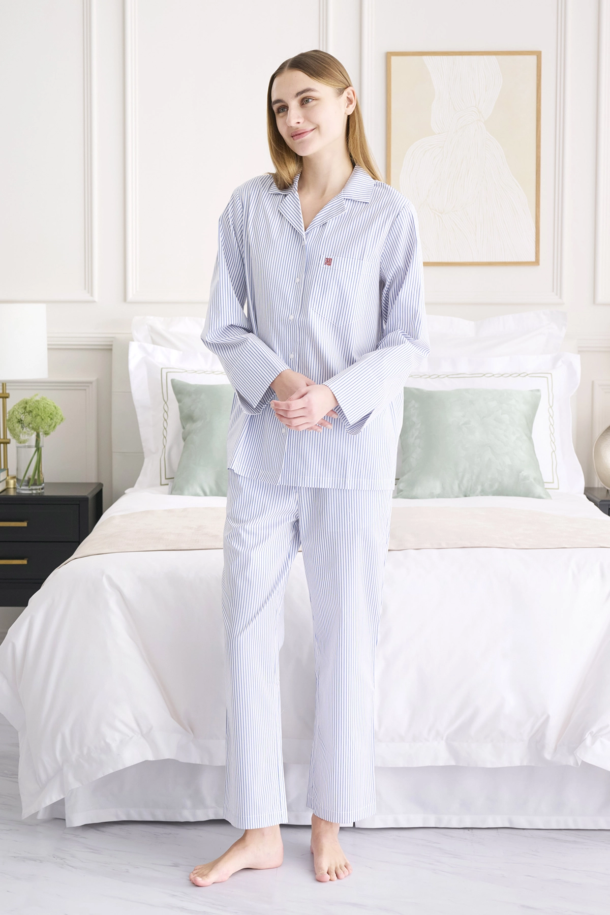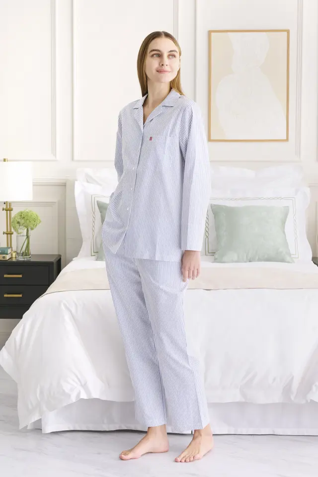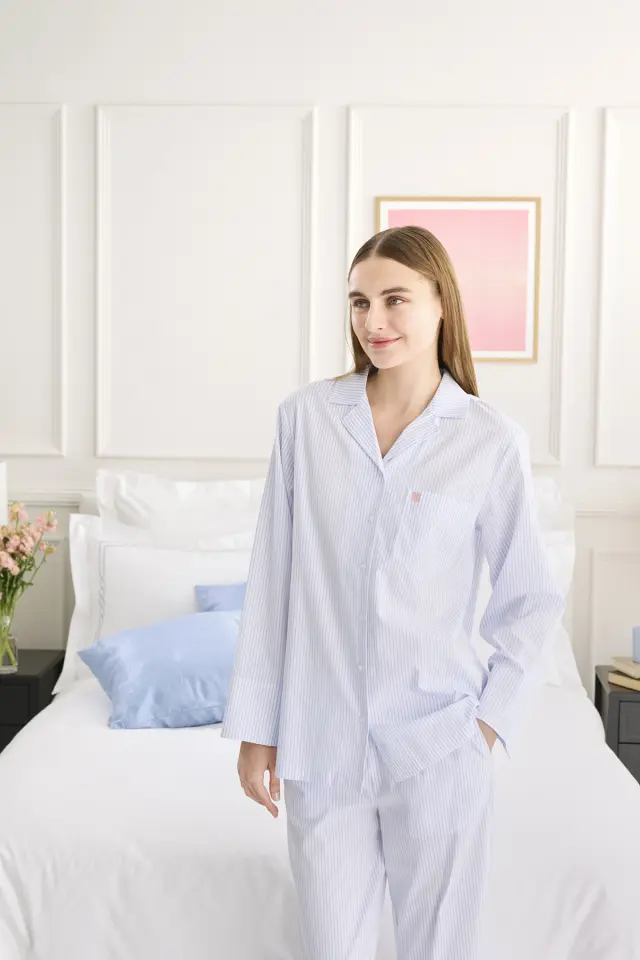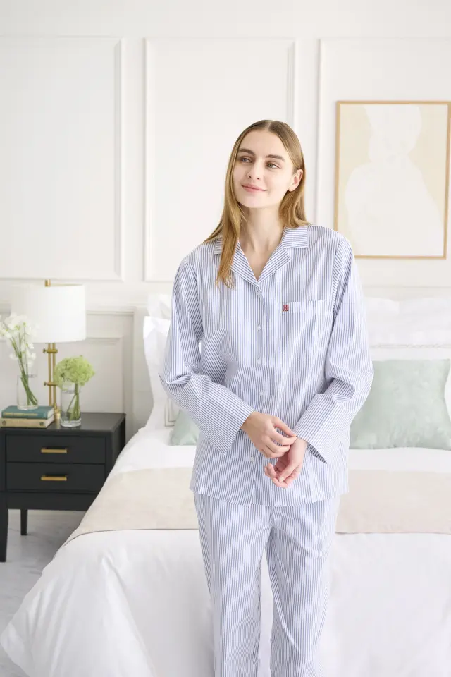 ハリのあるシャツ生地を使用したストライプのパジャマは、毎日の生活を整える必須アイテムです。