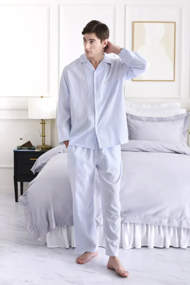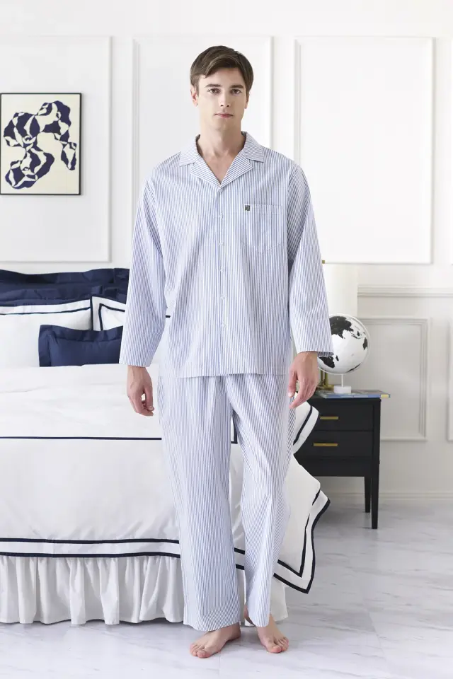 ハリのあるシャツ生地を使用したストライプのパジャマは、毎日の生活を整える必須アイテムです。
