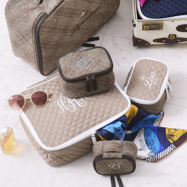 外出先で取り出す際にもパッと目を引く、上品なカラーのキルトポーチ。お化粧や小物を入れるポーチとして小さなバッグに入るミニサイズや、スーツケース内の整理整頓に便利なトラベルサイズまで、全4サイズの万能なポーチセットです。