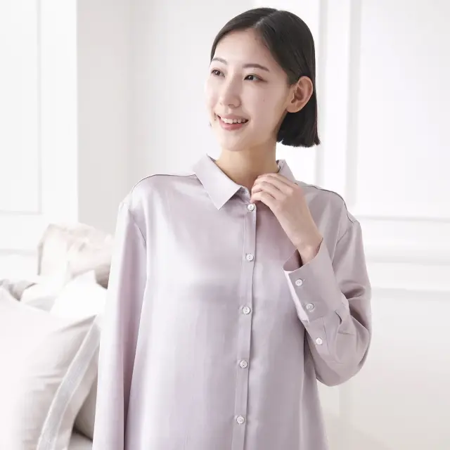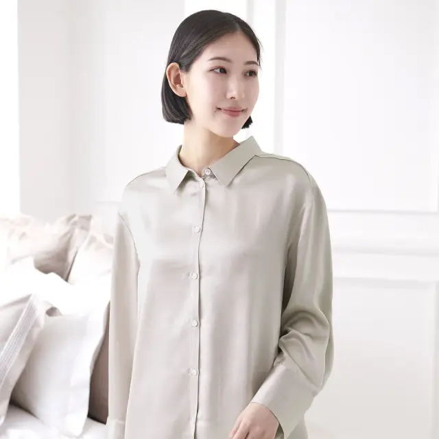 シルクならではの肌触りとやわらかなドレープを、モダンに着こなせるスタイルで。リラックスしやすいゆったりしたサイジングにこだわりながら、こなれた大人の雰囲気を感じるパジャマに仕上げました。着用してこそわかる、見た目以上のシルクの魅力を是非ご体感ください。
