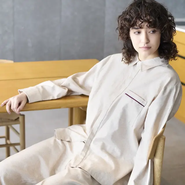 無理なくデイリーに袖を通せることを第一に考えた、肌に優しく触れるタッチと、リラックスタイムにふさわしいゆったりとしたシルエット。