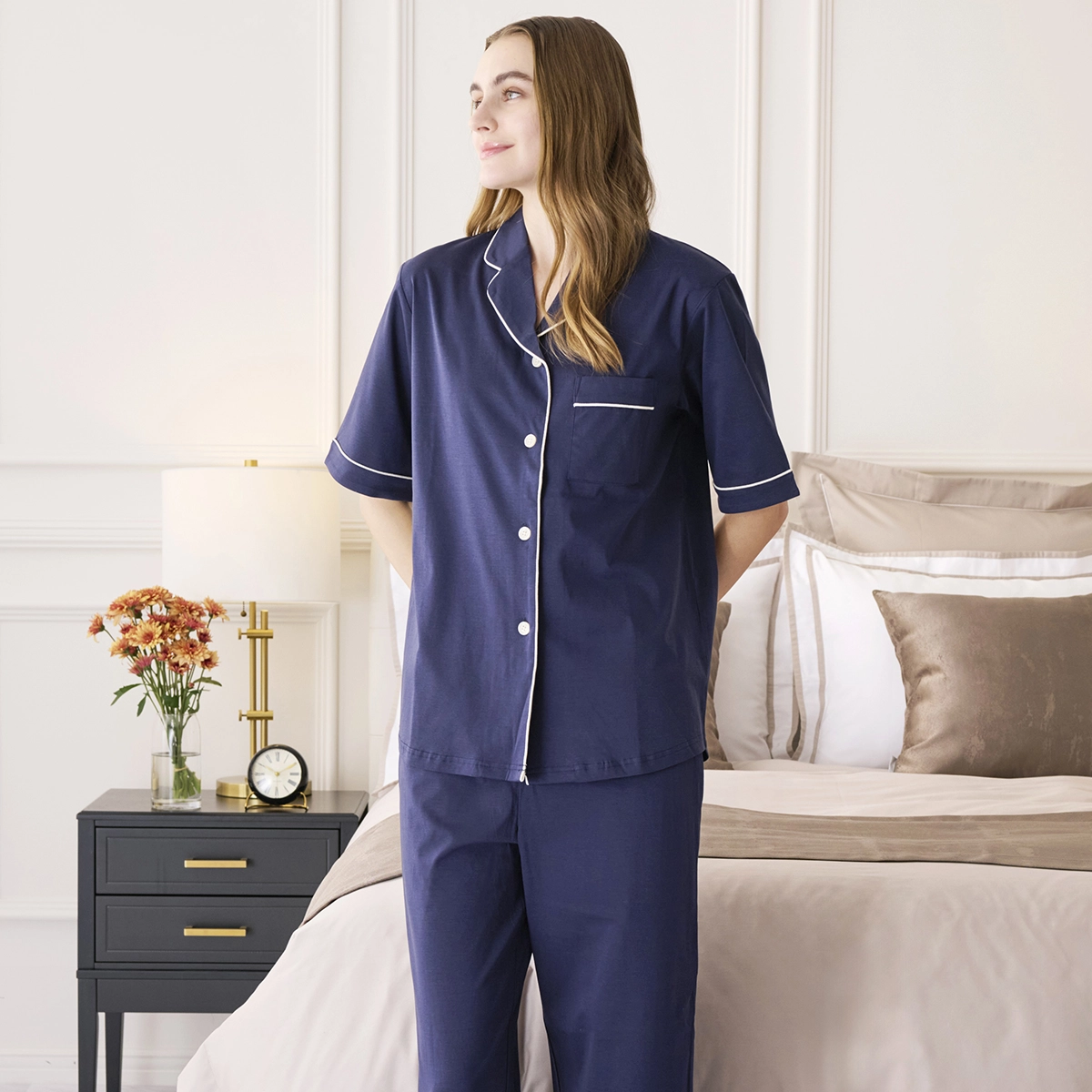 ホテルライクインテリアの定番、コットンジャージーパジャマに半袖仕様が加わりました。