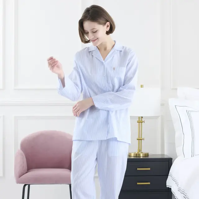 風格ある佇まいを軽い着心地でハリのあるシャツ生地を使用したストライプのパジャマは、毎日の生活を整える必須アイテムです。