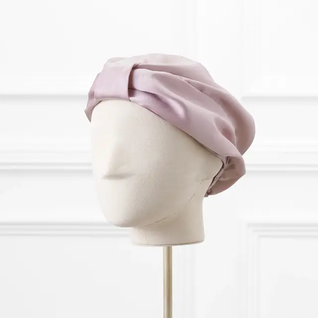 ナイトキャップは、なめらかで摩擦の少ないシルクの特性により、眠っている間の髪をやさしく保護。