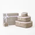 旅行時のパッキングや、普段遣いのバッグの整理整頓に重宝するポーチのセットは贈り物に最適です。刺繍を入れてオリジナリティを加えれば、なお一層愛着の沸く特別なアイテムに。