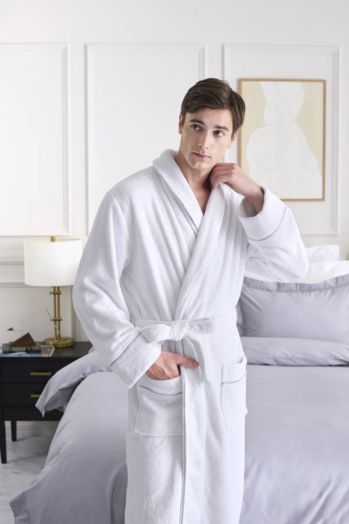 コットン100%の吸水性に優れた贅沢なバスローブ。