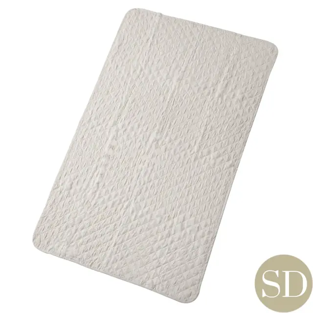 ボックスシーツとあわせて四隅のゴムの長さは、厚さ35cmまでのマットレスを想定して設定しています。 ホテルライクインテリアのボックスシーツを問題なくお使いいただけているマットレスならば、 こちらのベッドパッドも安心してご利用いただけます。