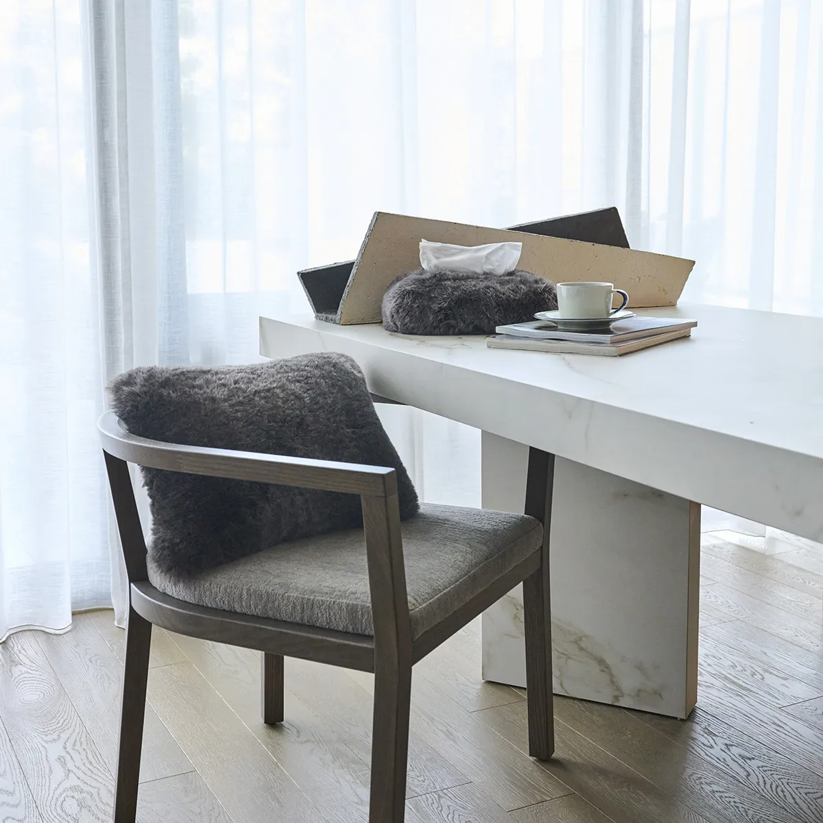 動物の毛皮を使用しないエコファー素材のインテリアコレクション。思わず手に取りたくなってしまうフラッフィーな感触と惜しみないボリュームが、寛ぎの空間にラグジュアリーなアクセントをもたらします。