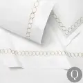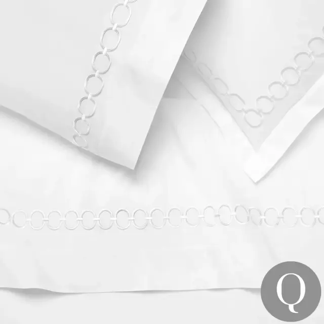 時代を超越して愛されるファインジュエリーからインスピレーションを得た、ミニマルなチェーンモチーフが特徴のコレクション。 真っ白なパーケール生地のキャンバスに、精細なステッチで描かれる鎖模様は洗練されたモダンな印象をもたらします。 ツートンカラーの糸を使用して施されることで、奥行きを感じる刺繍に仕上げられています。