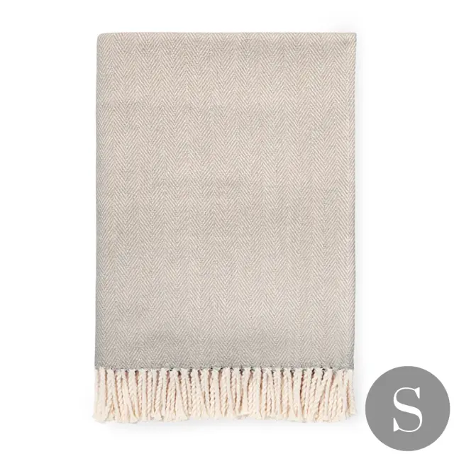 起毛させたコットンのふっくらとした風合いが心地よいベッドスロー・ブランケット。 やわらかな色彩によって構成されたカラーバリエーションは、クリーム色と合わせたヘリンボーンに仕上げることでより優しく落ち着いた印象に。ツイストされたフリンジがポイントです。