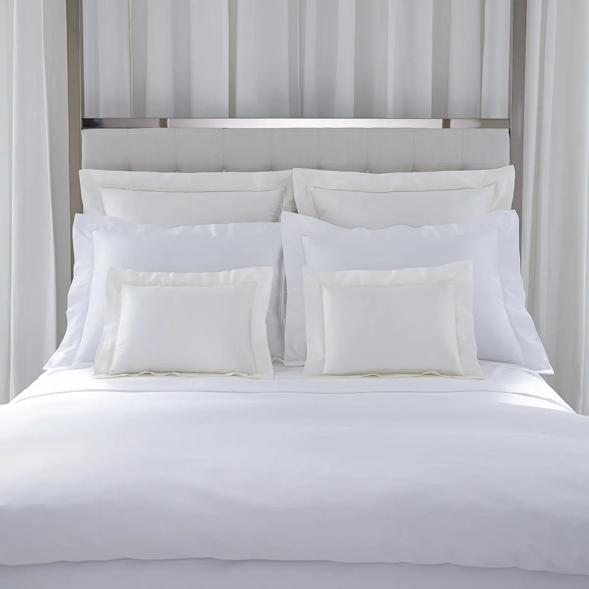 世界の綿の中で最高品質の、エジプシャンコットン「ギザ45」を100%使用したサテン織りのリネンです。 ナイル川流域で栽培され、イタリアの熟練された職人によって織り上げられた生地は ひとたび触れただけでその違いを感じられる、やわらかく贅沢な肌触りが特徴です。