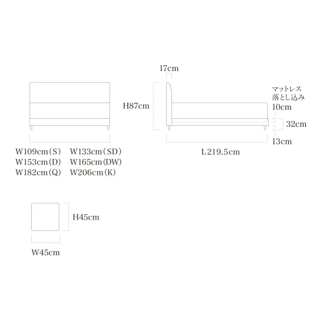 | サイズ | 幅×長さ×ヘッドボード(高さ) |
