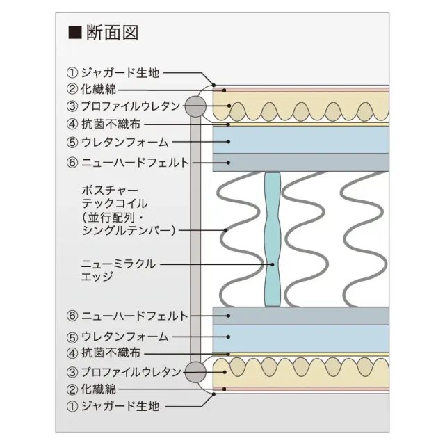 軽い部分は柔らかく、重い部分はしっかりサポートし、身体の各部位が必要とする最適なサポート力を実現する「ポスチャーテックコイル」を使用しました。