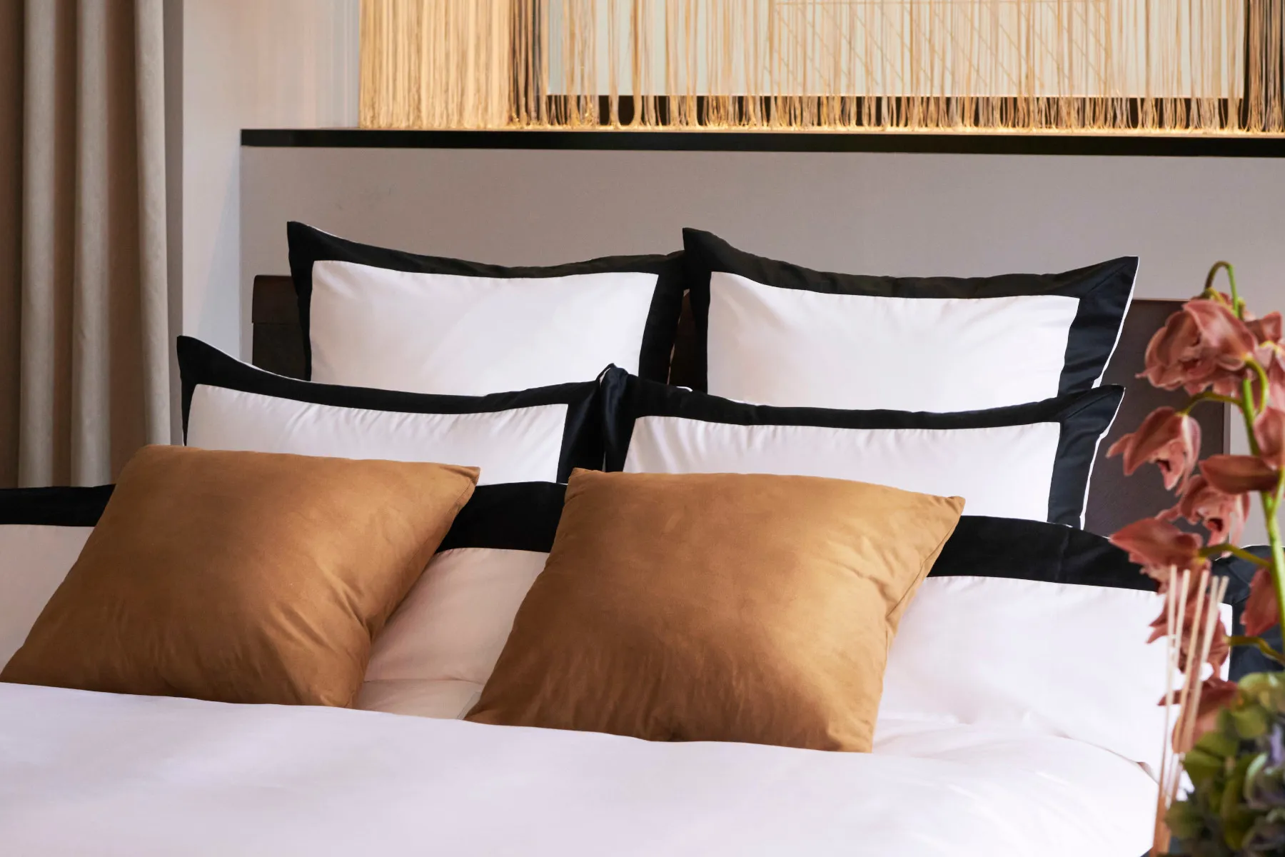 心地よく安らげるベッドルームをつくるには、シーツのグレードとともにコーディネートも大切です。国籍や年代もさまざまな人たちが利用するハイクラスホテルでは、ベッドインテリアに誰もが落ち着いて過ごせるデザインやカラーなどをセレクトしています。
