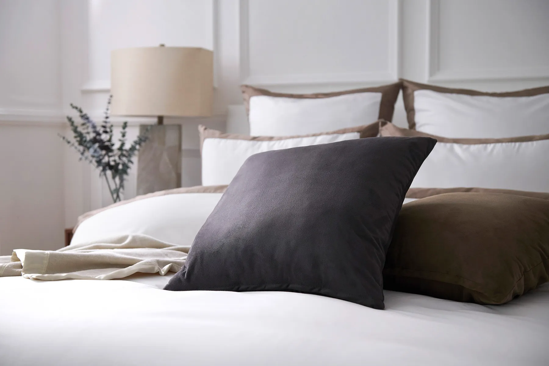 異なる素材感の組み合わせは、空間づくりに奥行きをもたらします。ほどよい毛流れ感と光沢は気張らずにコーディネートのポイントとなり、こなれた雰囲気を演出。ベッドルームでもリビングでも使いやすいカラーリングを揃えました。