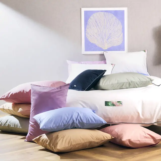 やわらかな発色が魅力の、コットン100%のピローケースです。