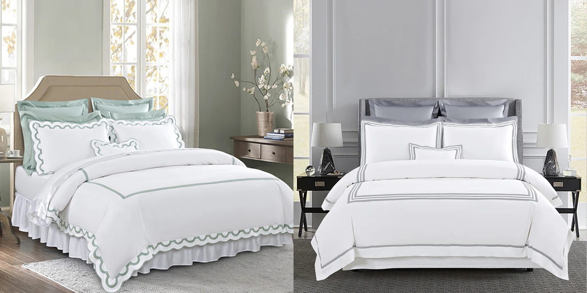 ホテルライクなベッドには、小花柄やチェックのようなカジュアルな柄物は避けたいところ。 変化をつけたいなら、ラインやウェーブといったシンプルな柄が縁の部分などにデザインされたアイテムを選びましょう。
