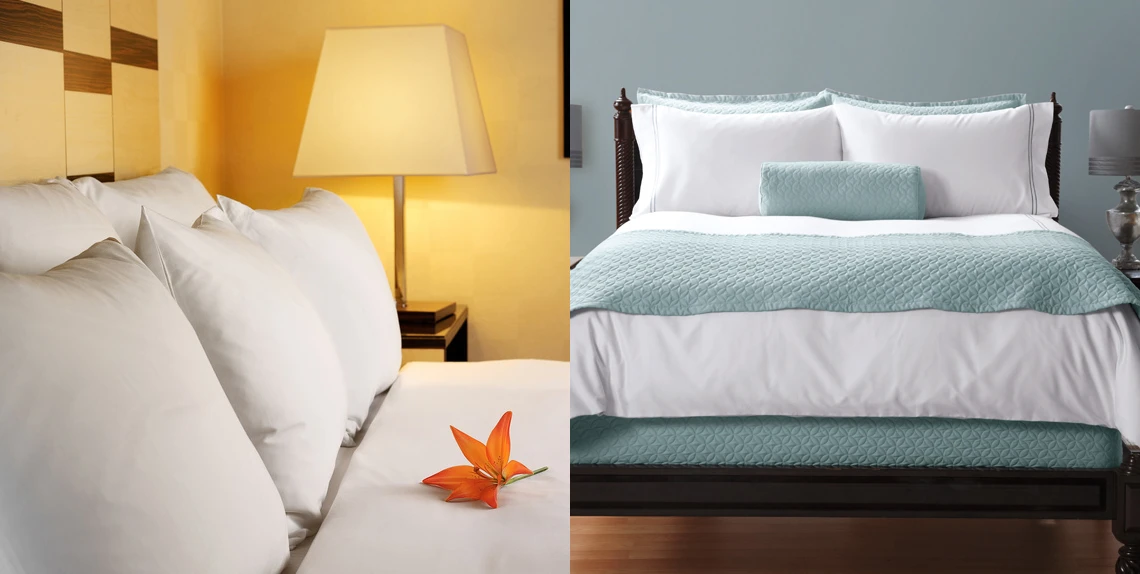 一流ホテルのリネンには清潔な印象を与えるホワイトが多く選ばれています。