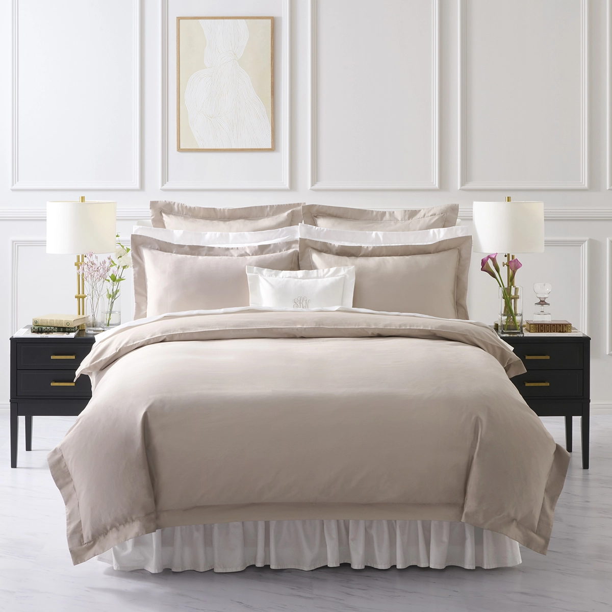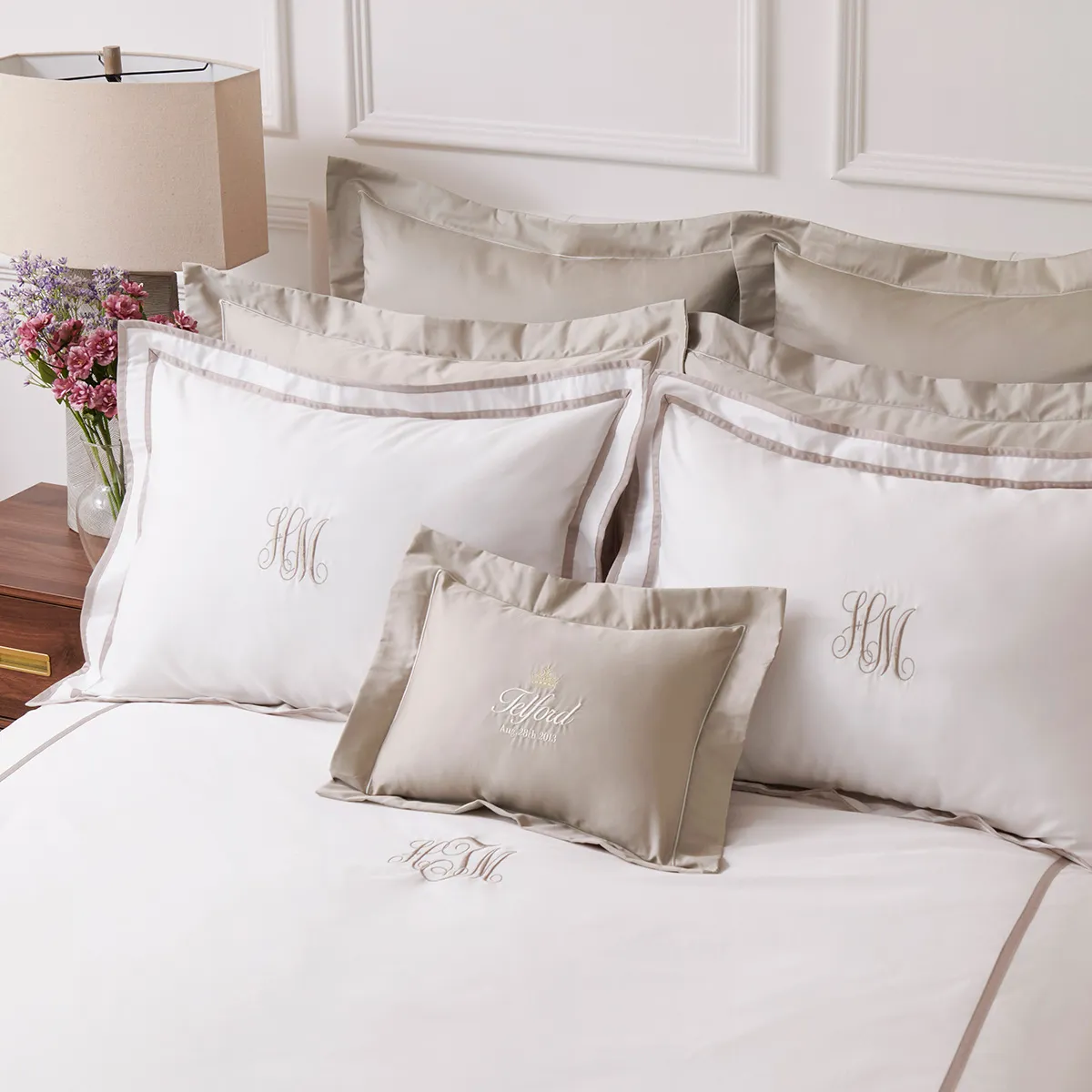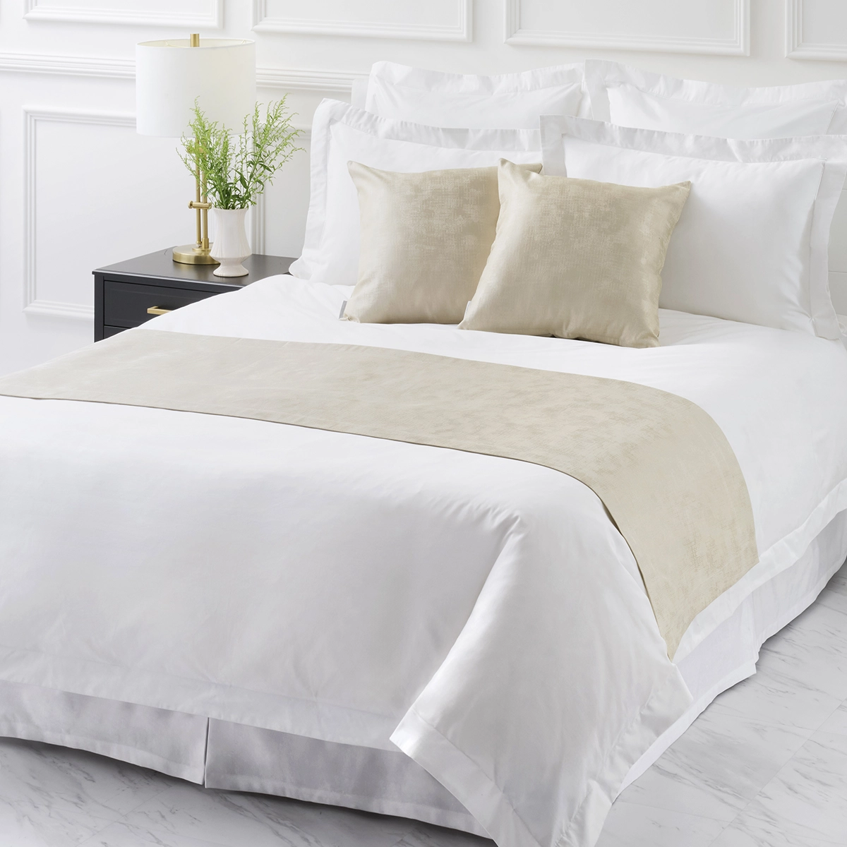 さりげなく施されたトリムラインが優美な400TCホテルシリーズ。上質で柔らかな印象のサンドは、シンプルで飽きのこない品の良さが魅力。