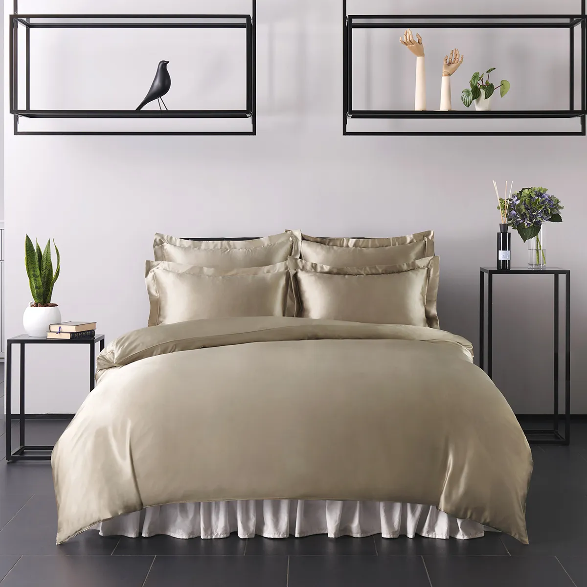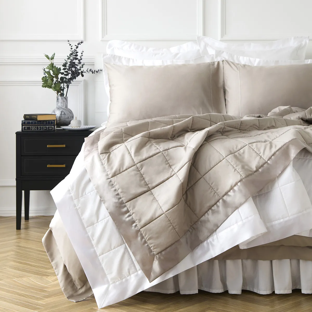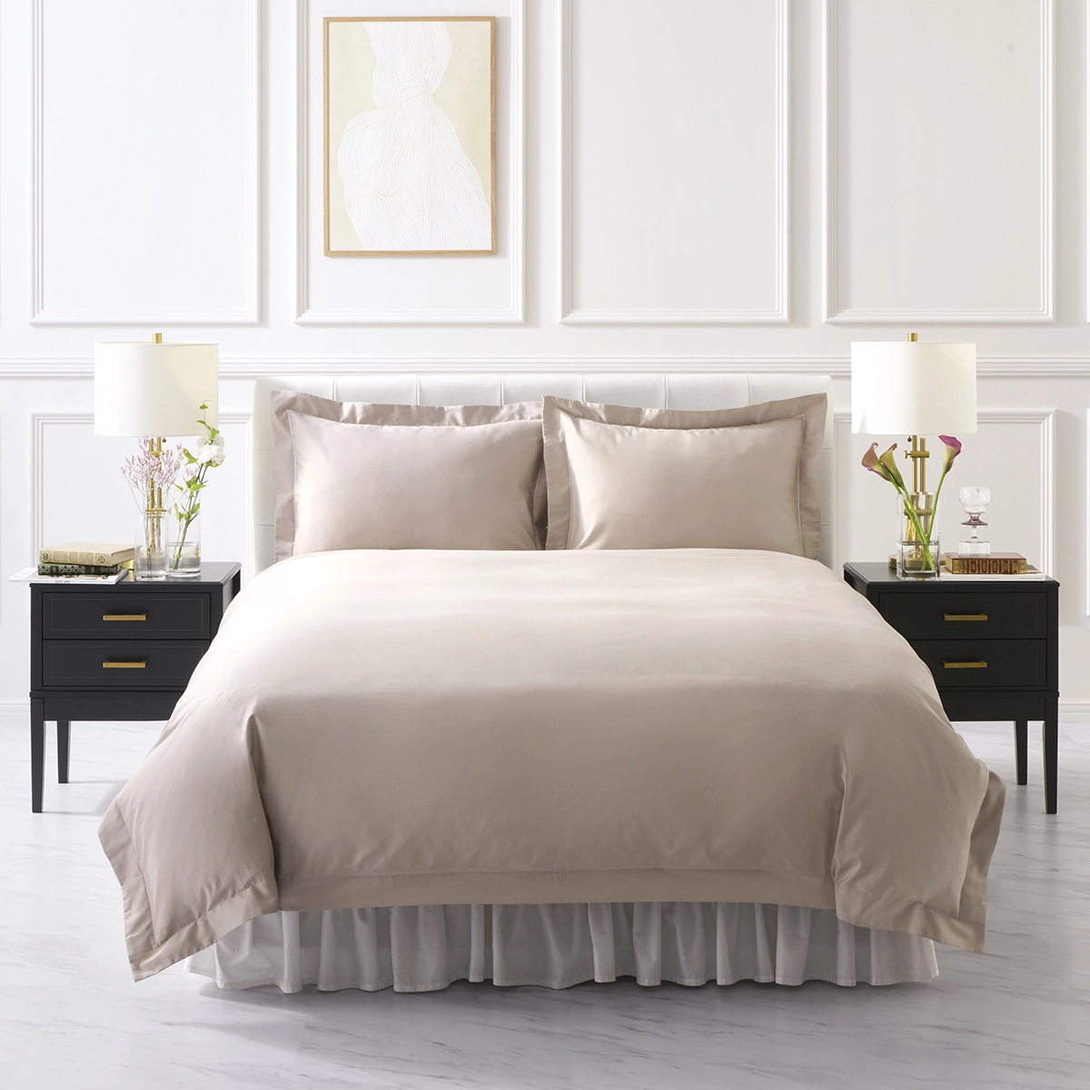 サンドベージュは主張の加減が絶妙で、どんな寝室にも取り入れやすいカラーです。