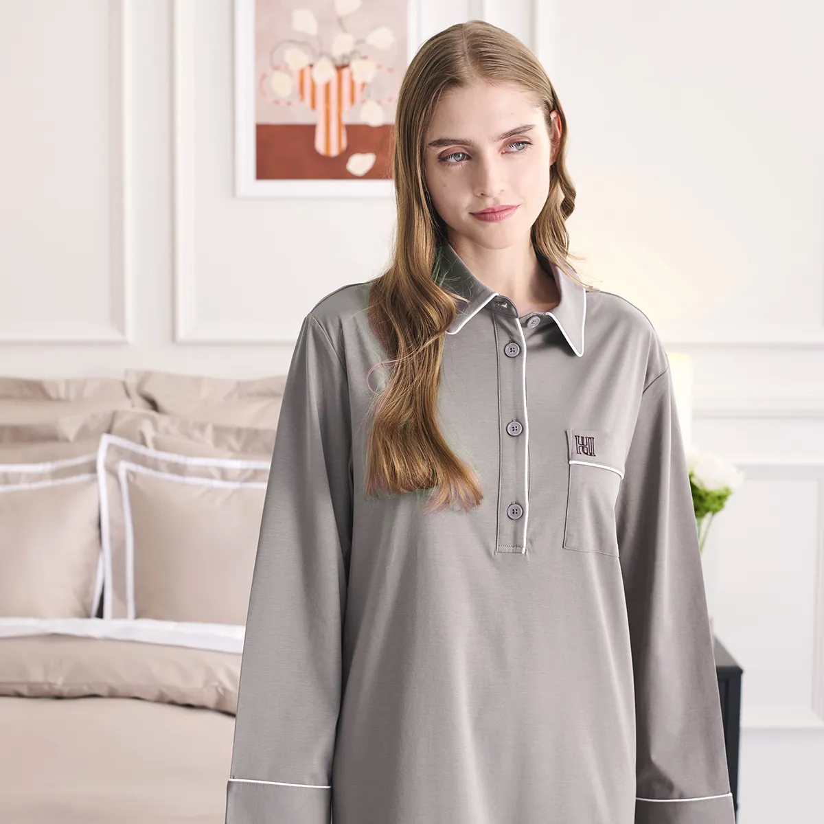 やわらかな印象と都会的な佇まいを併せ持つ、サンドベージュのリラックスウェア。