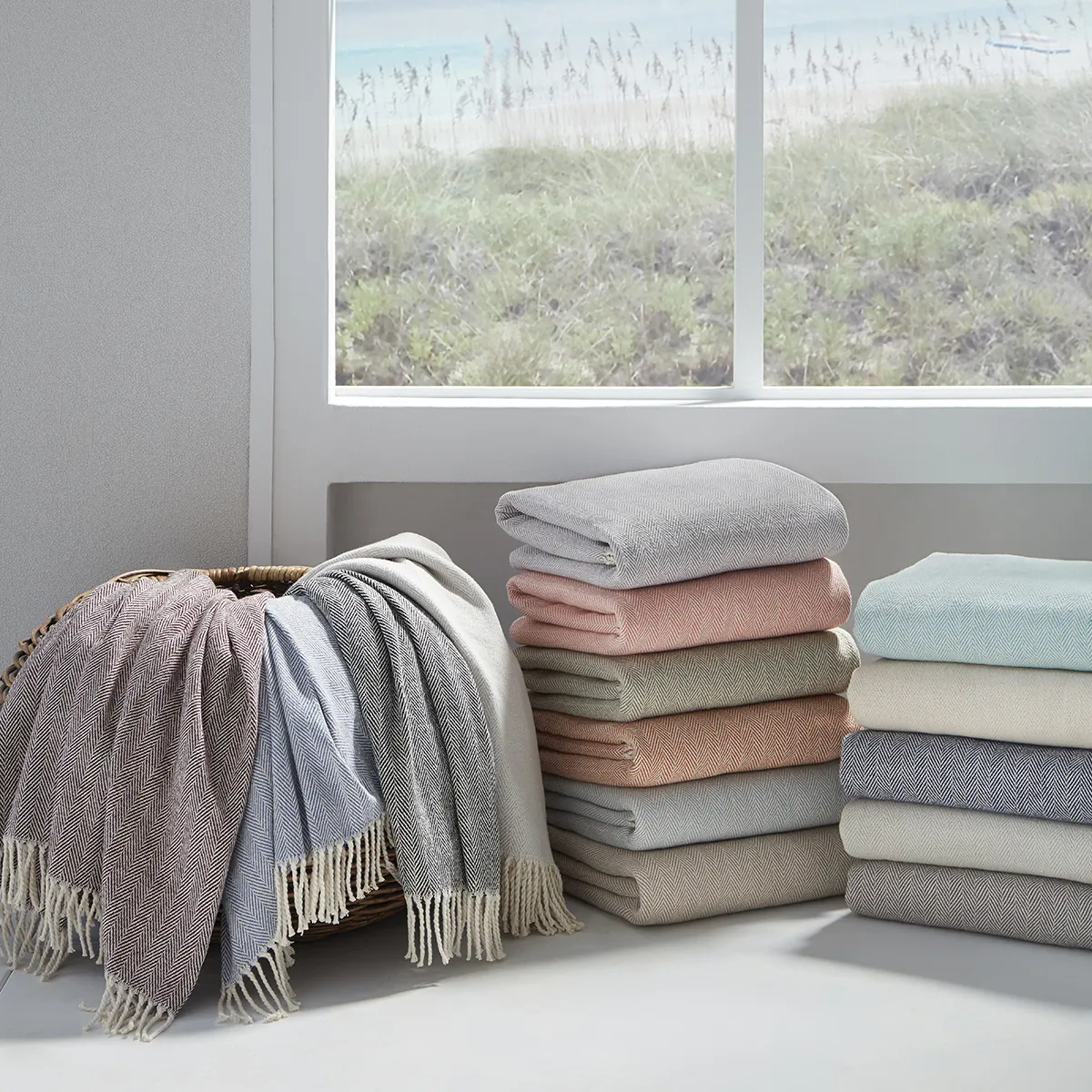 使用シーンの幅広いブランケットこそ、単体でもコーディネートでも使えるサンドベージュは真価を発揮します。